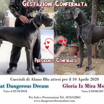 Ieri 14 Aprile 2020 sono nati 8 cuccioli di alano blu, 4 maschi e 4 femmine, da Gloria Iz Mira Moih Grez e Jan Great Dangerous Dream. Per informazioni contattarci telefonicamente 3476532865.